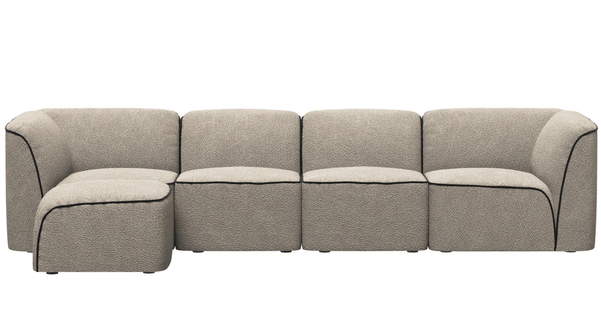 The Flora modular sofa is inspired by the natural shapes of vegetation and the organic growth of flower petals. The distinctive detail of Flora is the curved shapes outlined by an elegant piping that marks the contour of the sofa. Flora is available in four different modules, which allows for an unlimited number of combinations.