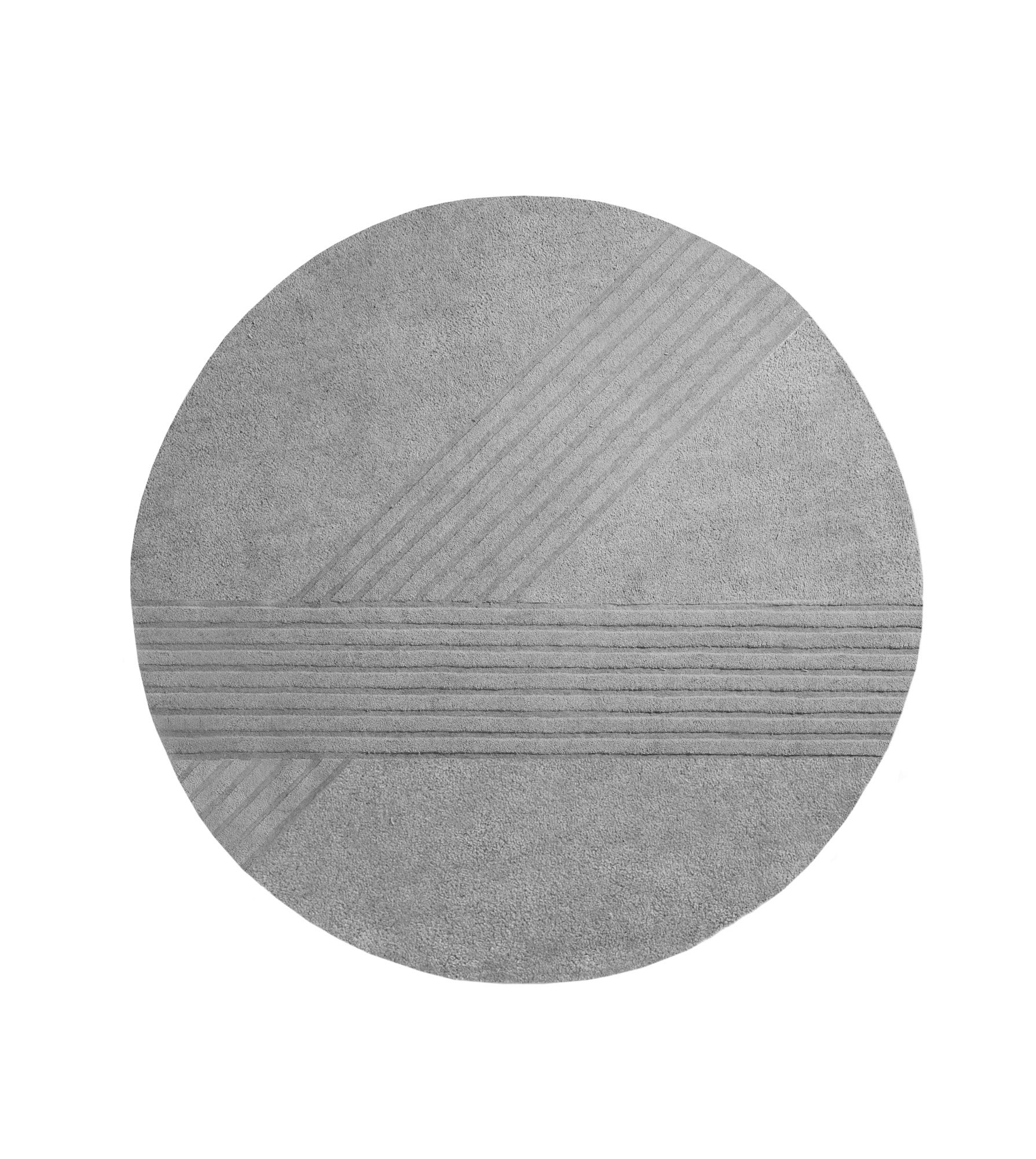 The hand-tufted wool rug, Kyoto, takes its inspiration from the distinctive pattern found in traditional raked Japanese rock gardens. With its minimalistic linear cut piles, the design provides a quiet sense of movement as the engraved lines travel in straight and diagonal motions.