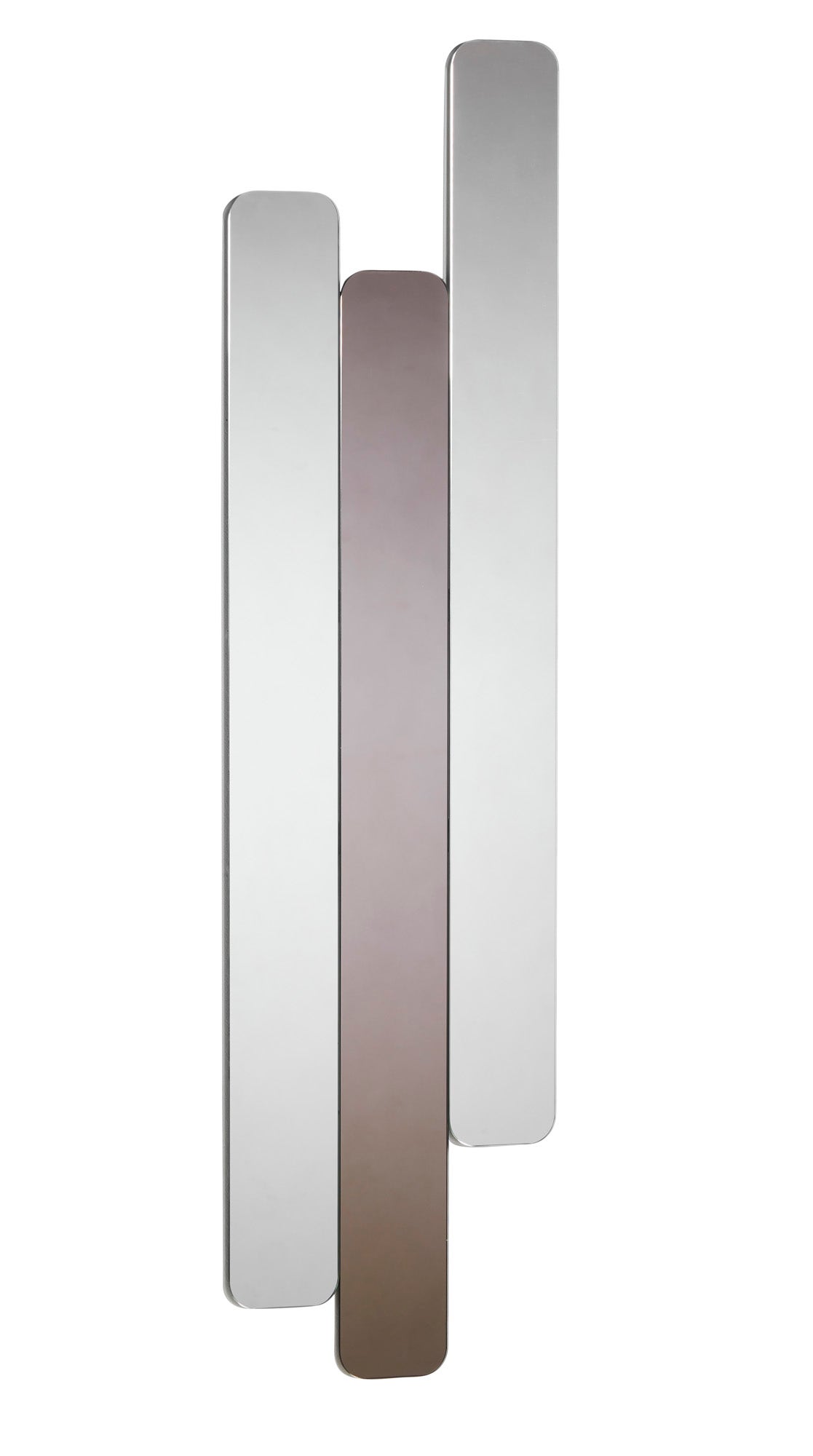 The individual mirrors can be placed at different heights to obtain a wavy effect, allowing you to construct a personalised expression. Choose between sets of three and five mirror slats or combine them to enhance the decorative effect. The sets come with a fixed composition of colours that can be arranged in the order you like.